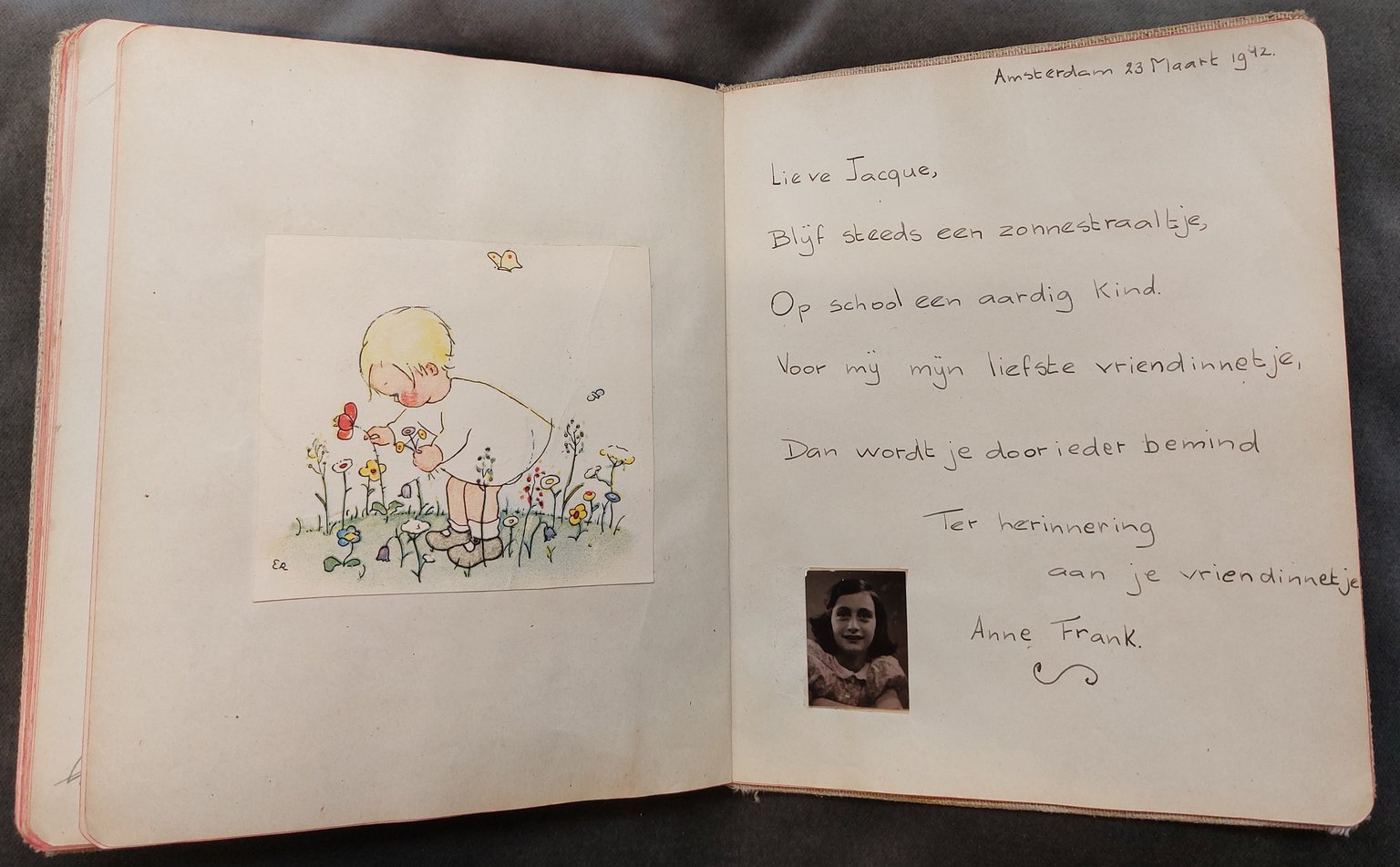 Jacqueline was born in Amsterdam on January 31, 1929. She met Anne in 1941 at the Jewish Lyceum, and their friendship was immediate and intense. Anne was immediately captivated by Jacqueline’s “dark hair and huge, enviably eyes.” For Anne, Jacqueline became an all-consuming passion. She constantly suggested sleepovers and even asked Jacqueline to accompany her to math tutoring, trying to weave their lives together as closely as possible.