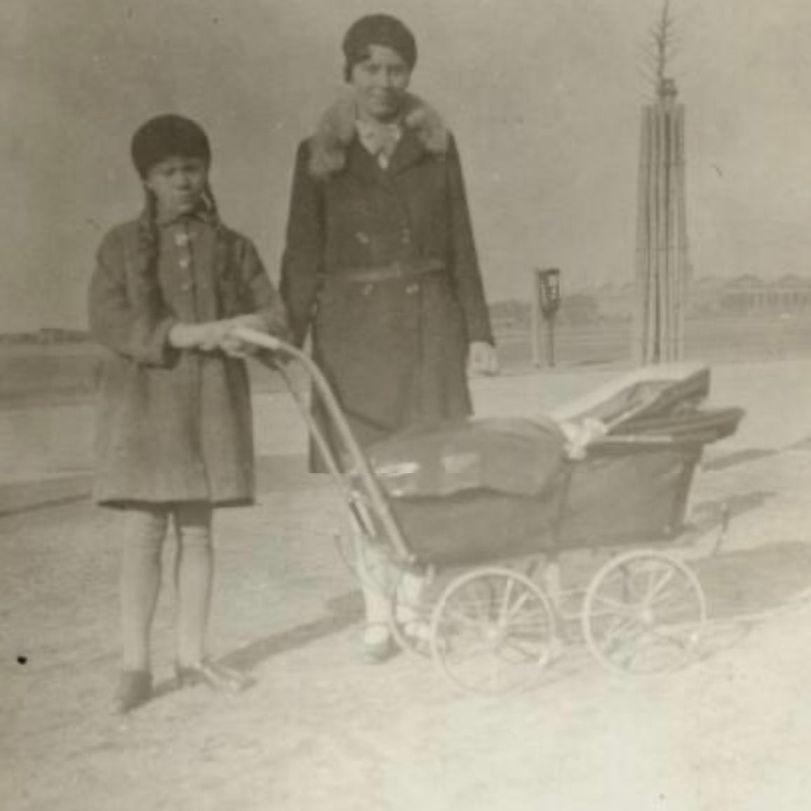 Gertrud with her sister and Anne in the stroller, February 1930.